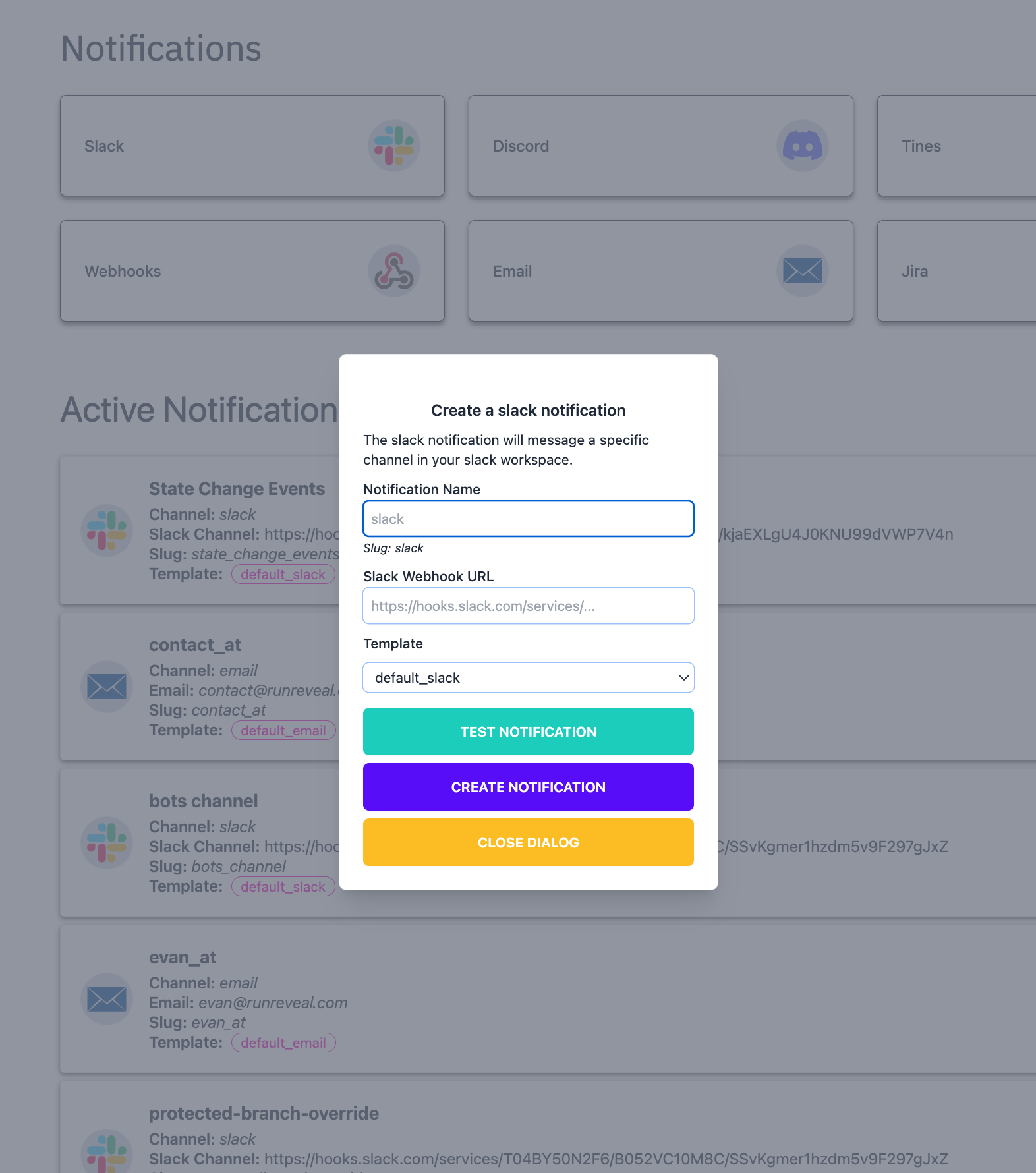 Using the CLI or the web UI, provide us with your slack webhook URL.