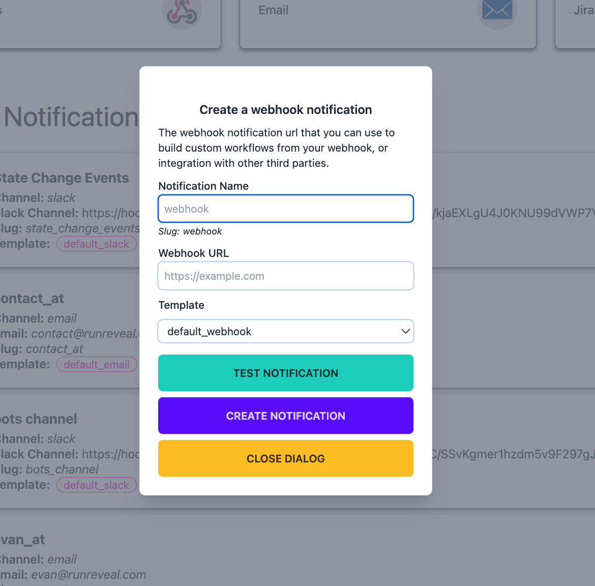 RunReveal will send HTTP POST request to a URL of your choosing along with the data that is associated with the detection.